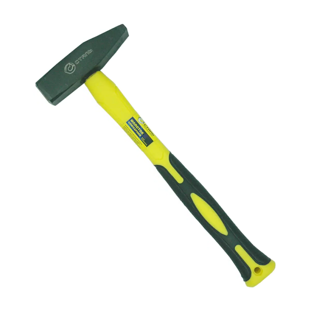 Молоток призначений для виконання слюсарних, столярних та монтажних робіт, що вимагають великої ударної сили при забиванні цвяхів та згинанні металевих виробів. Головка виробу виконана з кованої відполірованої сталі, загартована та покрита чорним лаком. Рукоятка з фібергласу (скловолокна), має високу механічну міцність, водо- і теплостійкість. Спеціальна гумова накладка пом'якшує удар та забезпечує надійне захоплення.